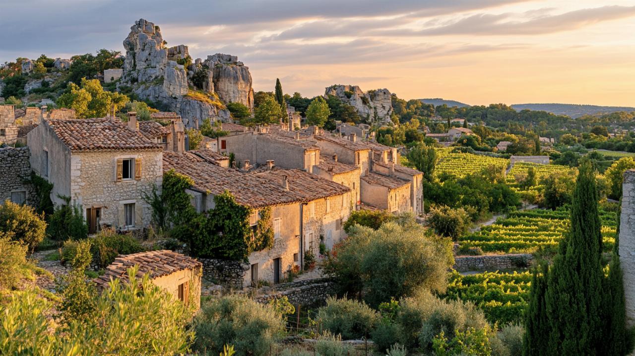 Niché au cœur du massif des Alpilles, le village des Baux-de-Provence offre une escapade idéale pour un weekend alliant patrimoine médiéval, nature provençale et découvertes gastronomiques. Classé parmi les plus beaux villages de France, ce joyau des Bouches-du-Rhône se découvre aussi bien à pied, à vélo qu'en voiture, dévoilant des panoramas exceptionnels sur la Vallée des Baux et les paysages environnants. Un séjour parfait pour s'immerger dans l'art de vivre provençal et explorer les richesses culturelles de cette région emblématique.